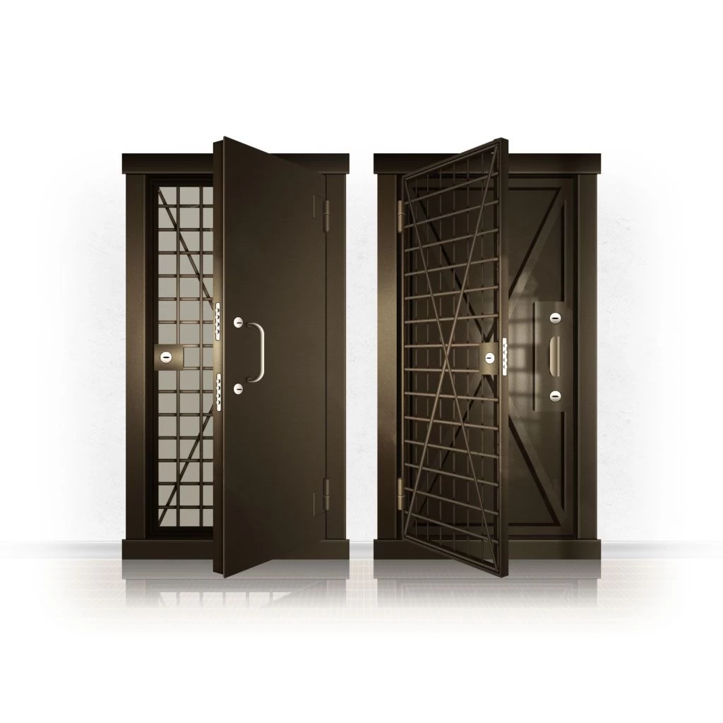 Металлические двери КХО и КХН представляют собой входные блоки, обладающие высоким уровнем взломостойкости и состоят из трех основных элементов: усиленного каркаса, сплошного металлического полотна и решетчатой двери. Дверной блок изготавливается из стального уголка 100*100 мм. Места крепления блока к стене цементируются и закрываются стальными наличниками шириной 40 мм. Крепеж заходит вглубь стены на 80 мм. В конструкции внешней створки монтируются ребра жесткости, для обшивки используется сталь толщиной не менее 3 мм. Внутренняя решетка изготавливается из прутка диаметром 16 мм. Размер ячеек решетки должен составлять не более 15 на 15 см. В точках пересечения прутья надежно приваривают друг к другу. В КХО и КХН необходимо поддерживать определенную температуру и влажность. Для этого внутреннее пространство глухой двери заполняется теплоизоляционным материалом, а по периметру двери приклеивается уплотнитель. Такие двери оборудуются замками с повышенным уровнем взломостойкости. Специализированные двери КХО и КХН в Рязане могут быть оснащены сигнализацией, в конструкции могут быть проушины для навесного замка и элементами для опечатывания. Если идет речь о двери в комнату хранения оружия, в створке оборудуется окно для выдачи оружия и спец. средств, которое накрывается стальной дверцей.