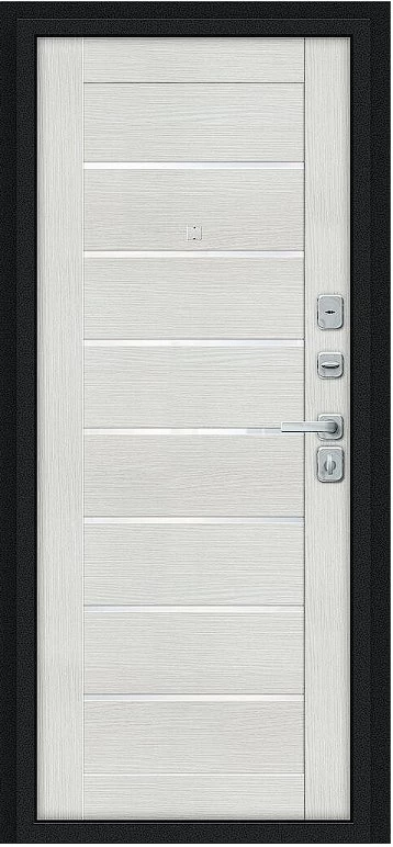 Дверь Браво Техно/BChrome Букле черное/Bianco Melinga - недорогая эконом класса по цене 3 971 руб., отлично подходит для временной установки в квартиру под сдачу, строительство, ремонт. Не смотря стоимость, модель хорошего качества.